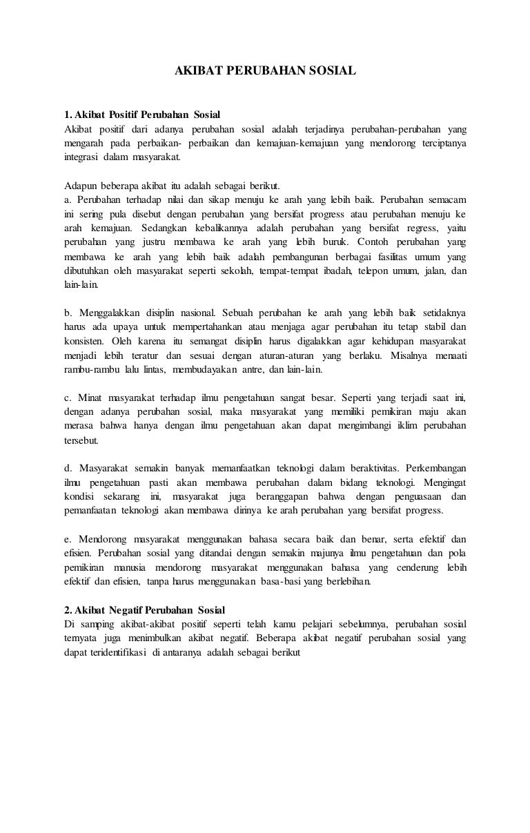 Contoh Perubahan Sosial Budaya Di Indonesia