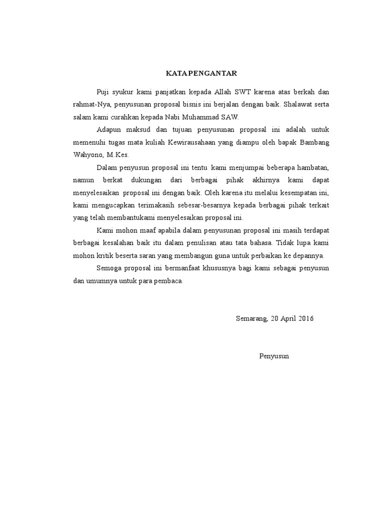 Contoh Kata Pengantar Proposal Usaha yang Baik dan Benar [ Doc / PDF ]