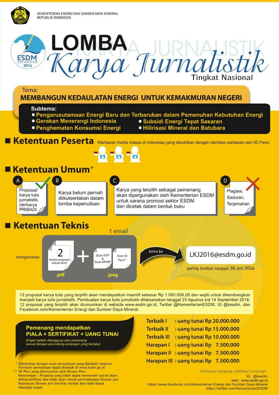 EnergiBerkeadilan on Twitter: “Selamat pagi @arbainrambey #KESDM mengadakan Lomba Karya Jurnalistik 2016. Mohon bantu share ke rekan jurnalis ya :)… "