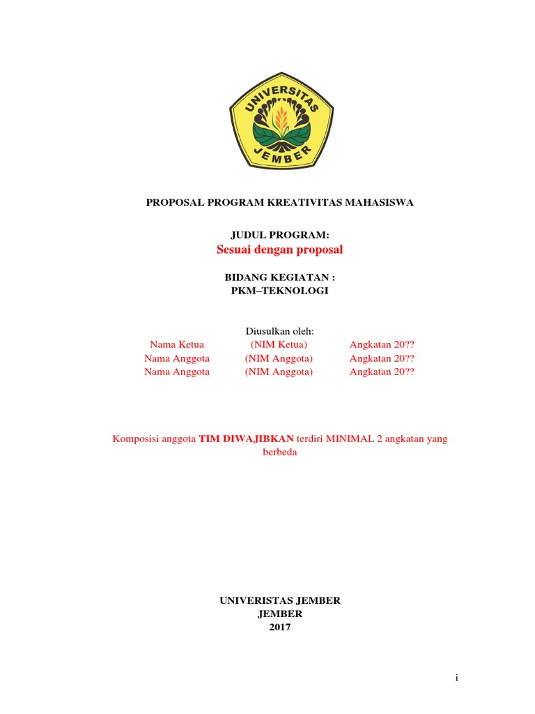 PDF) CONTOH PROPOSAL PROGRAM KREATIVITAS MAHASISWA JUDUL PROGRAM