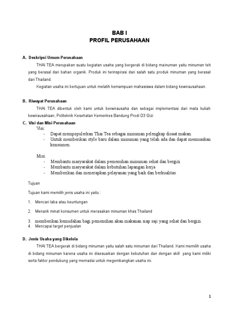 Proposal Usaha Thai Tea Pdf
