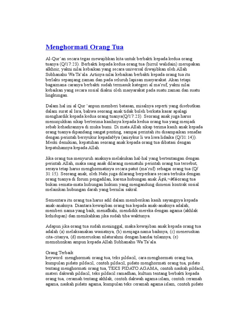 DOC) Contoh Teks Pidato Pildacil -Berbakti Kepada Orang Tua | Henny Rosa - Academia.edu