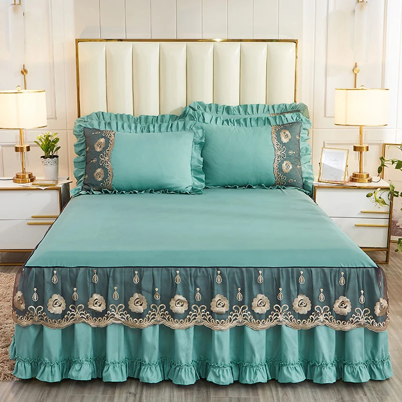 Hijau Romantis Renda Tidur Tidur Rok Lembut Bed Cover Putri …