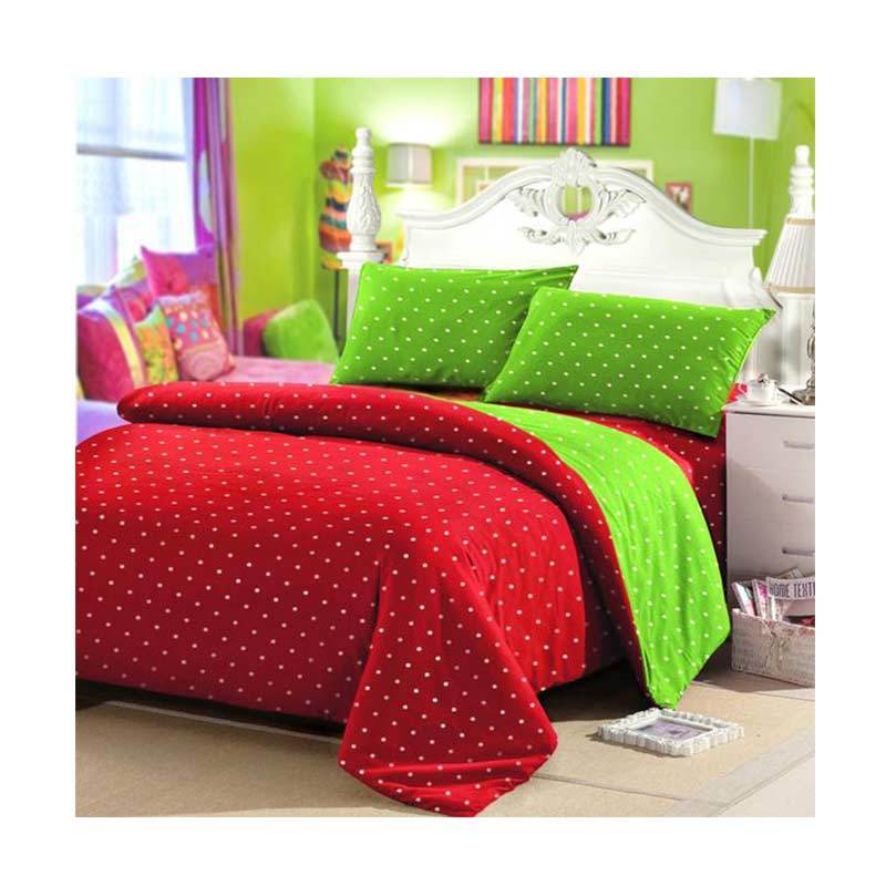 Jual Ellenov Motif Polkadot Set Sprei & Bedcover - Merah Hijau …