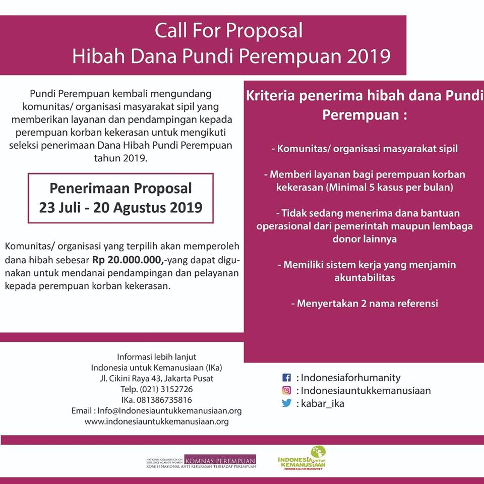 Indonesia untuk Kemanusiaan a Twitter: “Call for Proposal Pundi Perempuan Indonesia utk Kemanusiaan (IKa)&Komnas Perempuan buka hibah dana Pundi Perempuan Pengajuan proposal 25 Jan-11 Feb Format: https://t.co/BlFV7rtUDw Cp:021-3152726 Lilik HS …