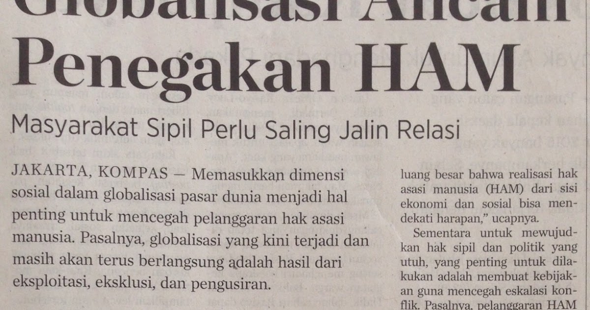 Globalisasi Ancam Penegakan HAM (Hak Asasi Manusia). Kliping Koran KOMPAS