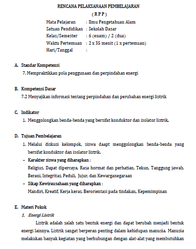 Download Rpp Ipa Ktsp Kelas 6 Sd Materi Perpindahan Dan Perubahan Energi Listrik (Dilengkapi Lk Siswa, Penilaian Dan Kunci Jawaban) - Mata Pelajaran