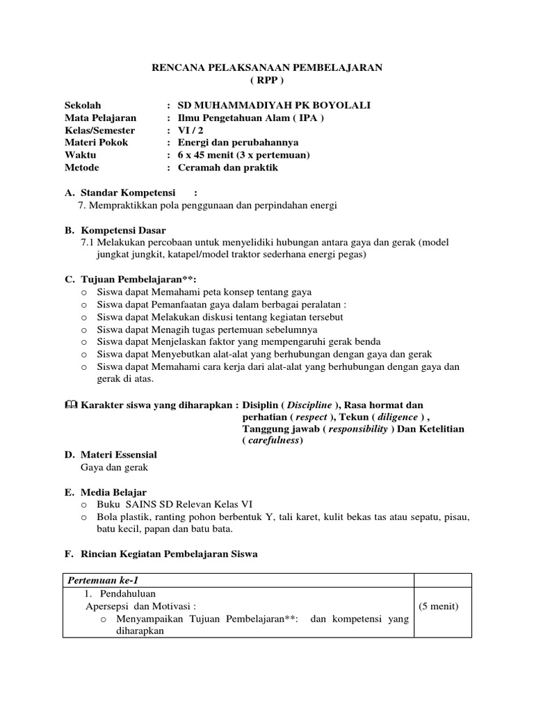 Rpp Ipa Kelas Vi Sd Semester 2