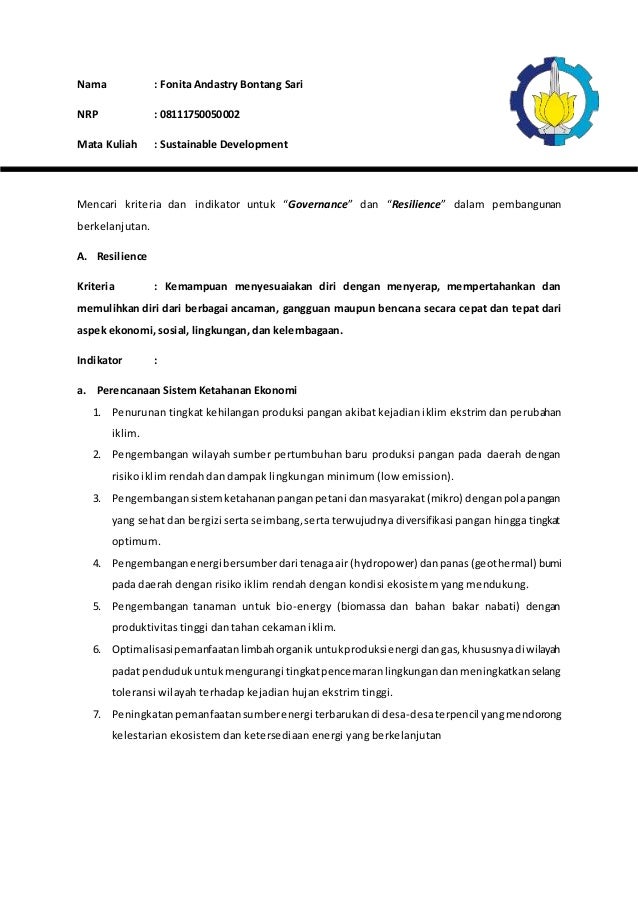 Kriteria governance dan resilience dalam pembangunan berkelanjutan
