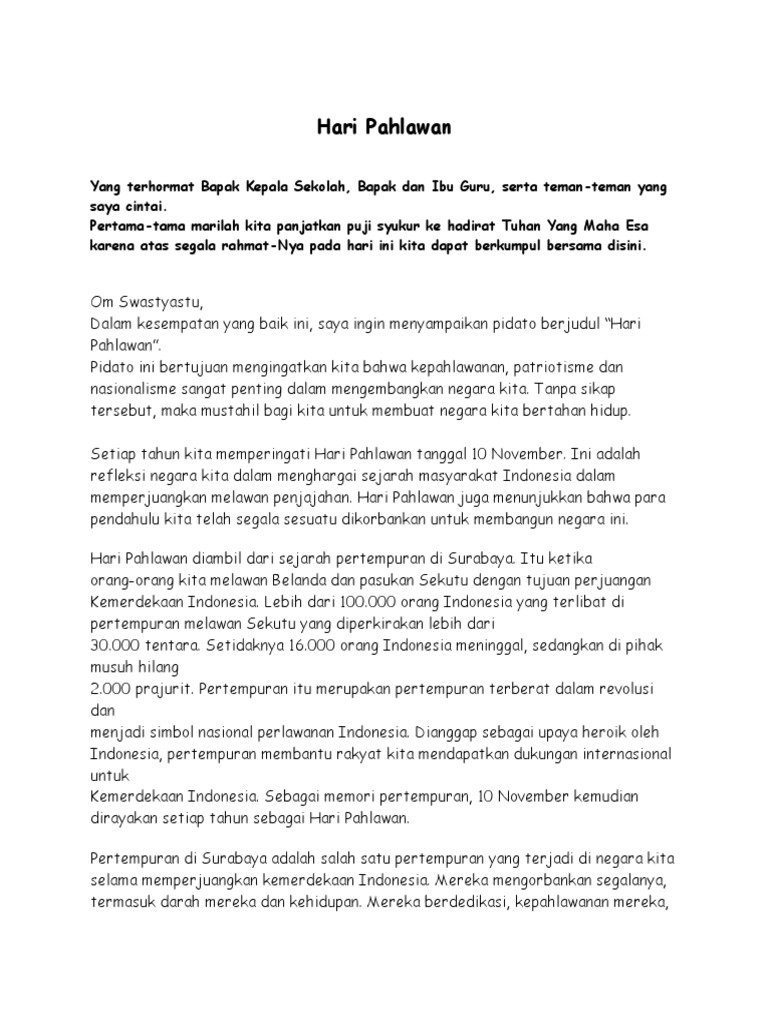 Contoh pidato hari pahlawan 10 November 2018 - Guru Tegal