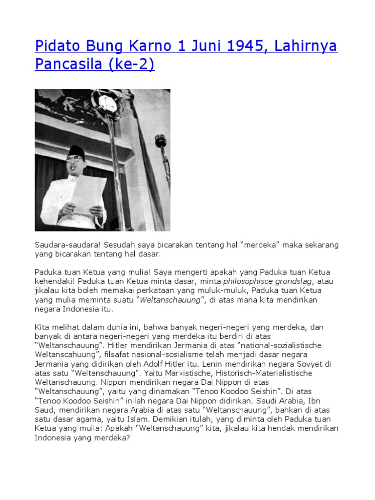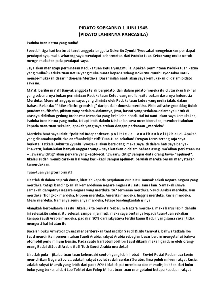 DOC) Pidato Bung Karno 1 Juni 1945 [ Lahirnya Pancasila | zidni muhammad - Academia.edu