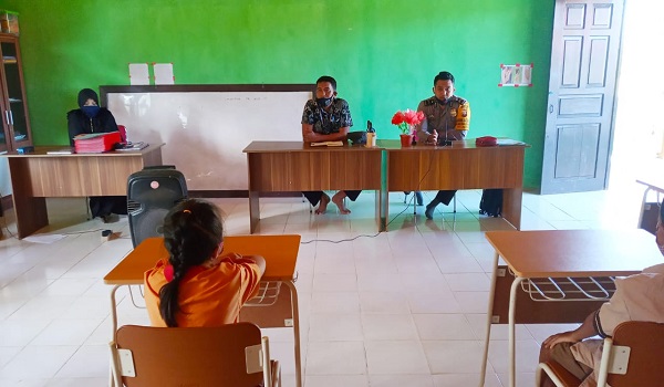 Bhabinkamtibmas Polsek Belitang Sosialisasikan Protokol Kesehatan Saat Pembagian Raport Murid Sekolah Dasar | Tribratanews Polres Sekadau