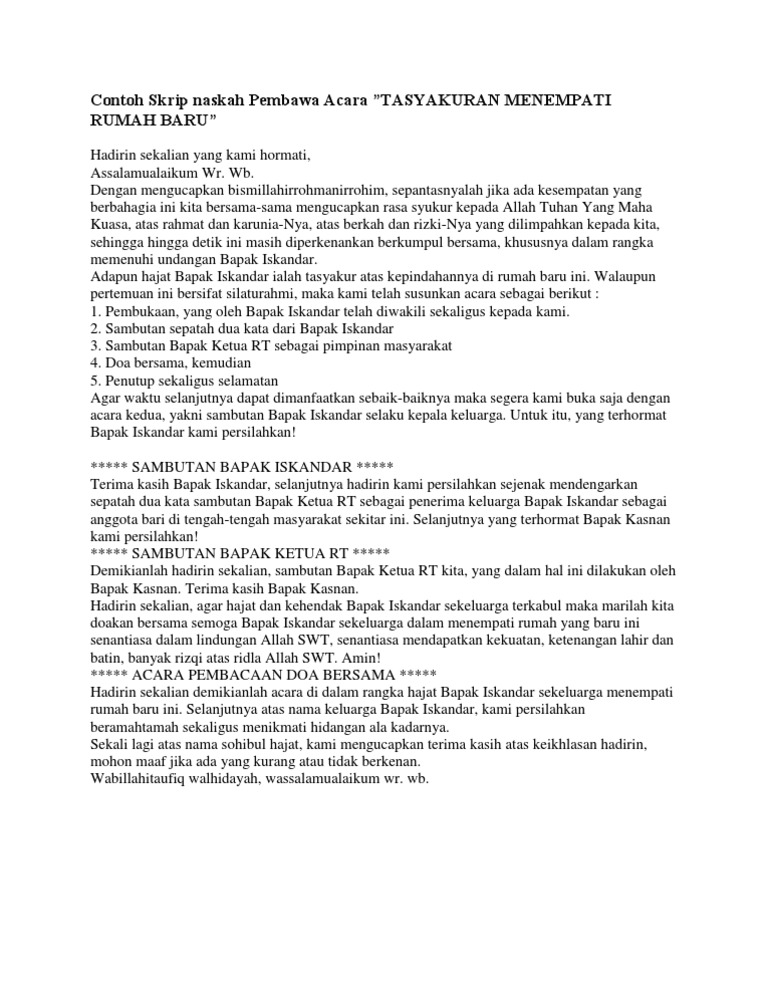 Contoh Naskah Pembawa Acara