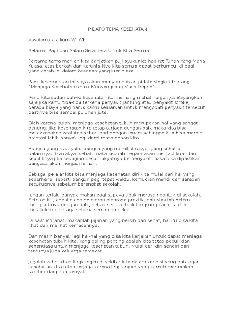 Pidato Singkat Tentang Kesehatan