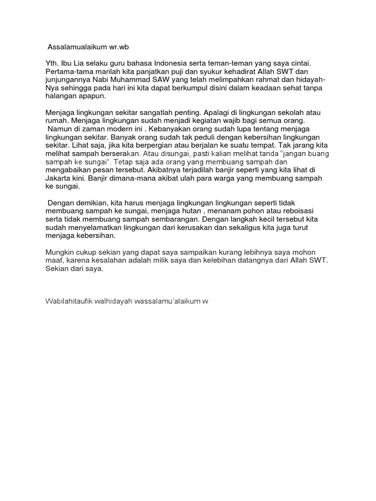 DOC) Contoh pidato singkat tentang lingkungan sekolah | Dhlie Razor - Academia.edu