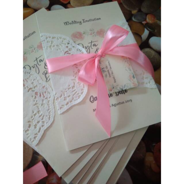 Jual Undangan Pernikahan Floral Pita & Doiley Soft Cover Wedding Invitation - Kab. Kediri - firotin grosir | Tokopedia