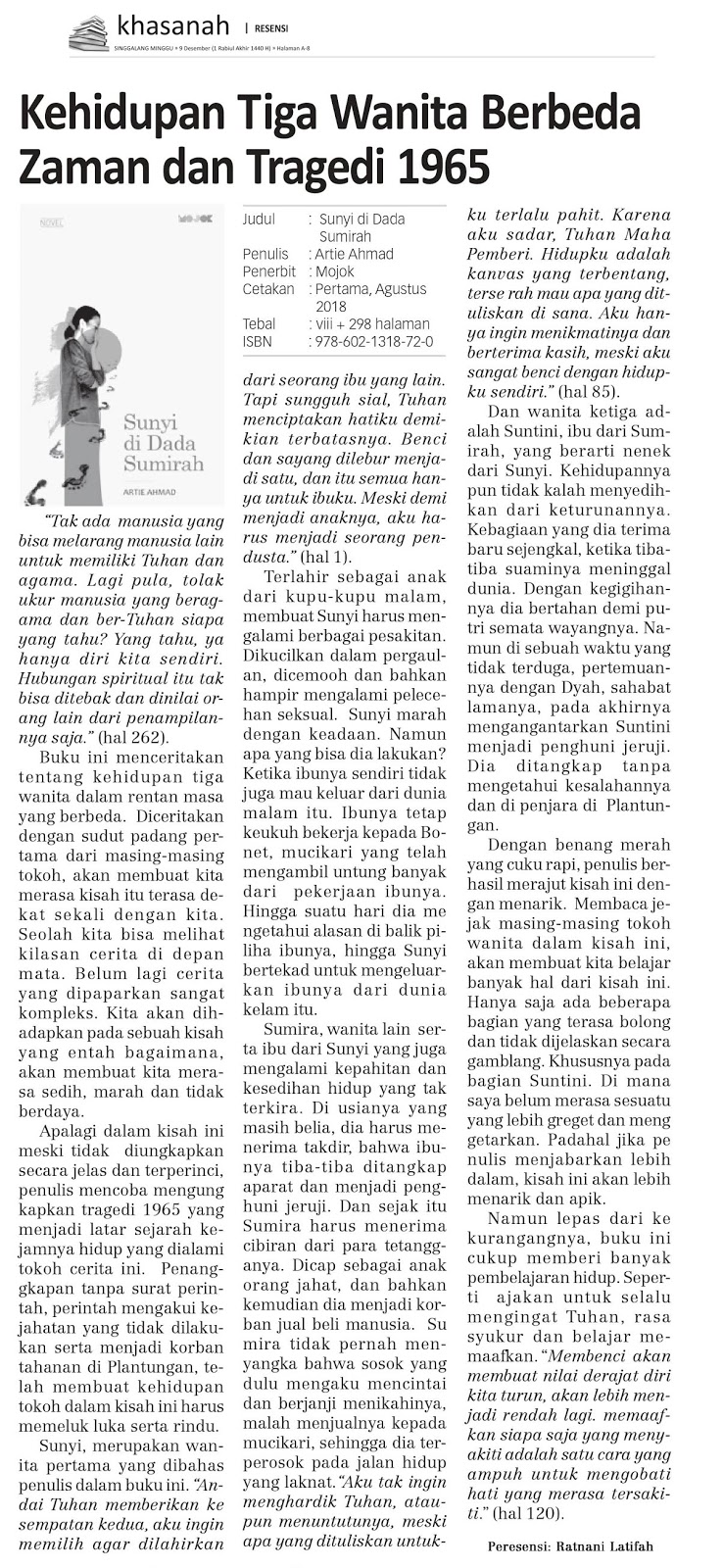 Coretan Kazuhana El Ratna Mida (Ratnani Latifah) : [Resensi] Kehidupan Tiga Wanita Berbeda Zaman dan Tragedi 1965