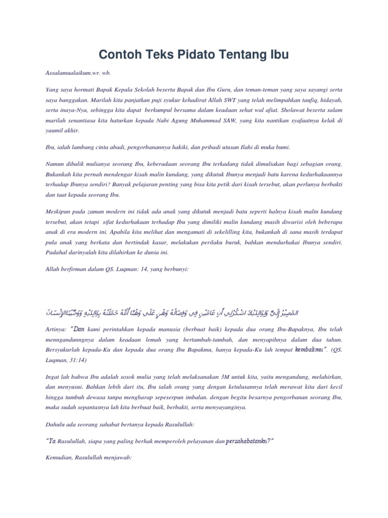 DOC) Contoh Pidato Tentang Ibu Islami | Nina Rosalina - Academia.edu