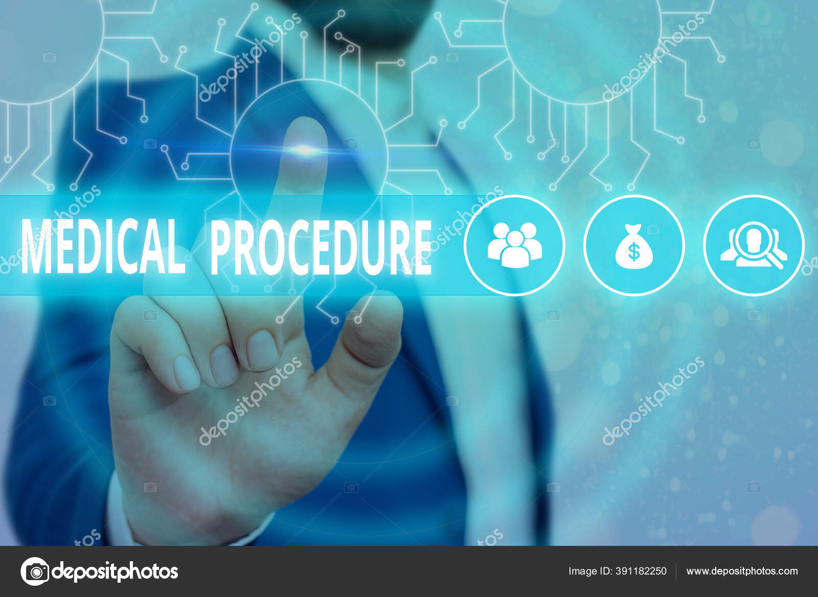 Kata menulis teks Prosedur Medis. Konsep bisnis untuk suatu tindakan yang dimaksudkan untuk mencapai hasil dari