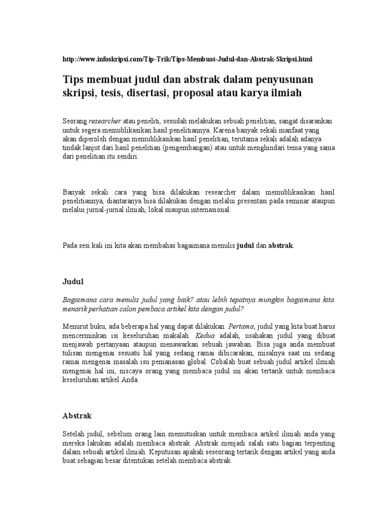 Tips Membuat Judul Dan Abstrak Dalam Penyusunan Skripsi
