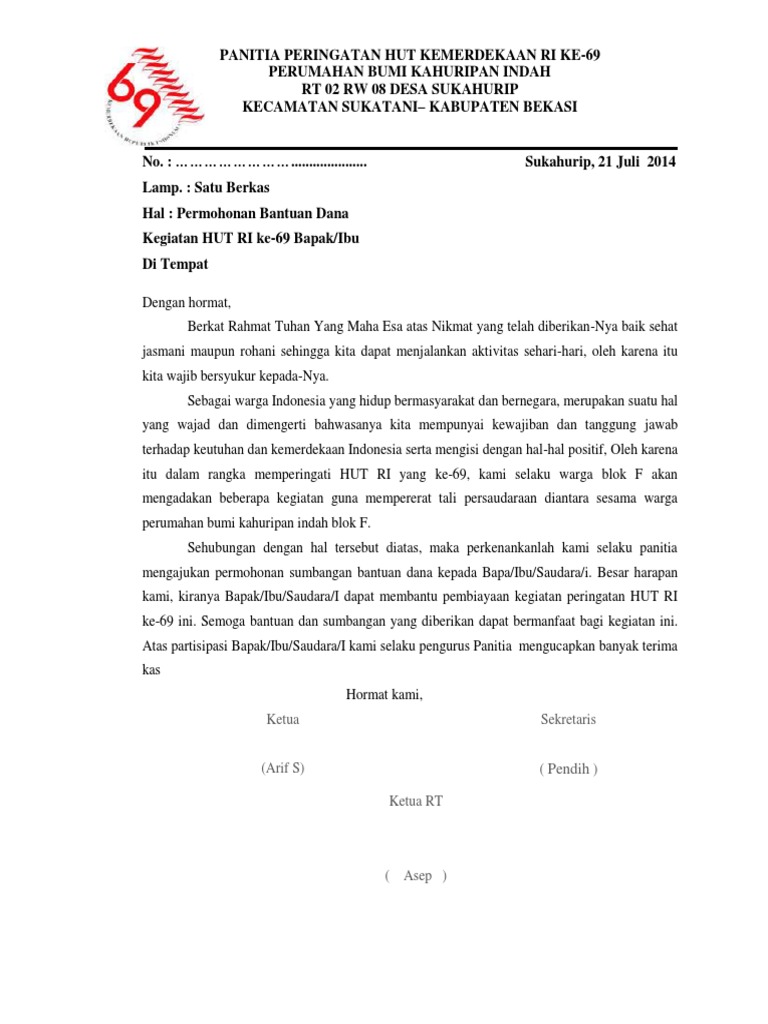 Contoh Surat Permohonan Bantuan Dana dan Proposal Kegiatan HUT RI | Surat, Proposal, Tesis