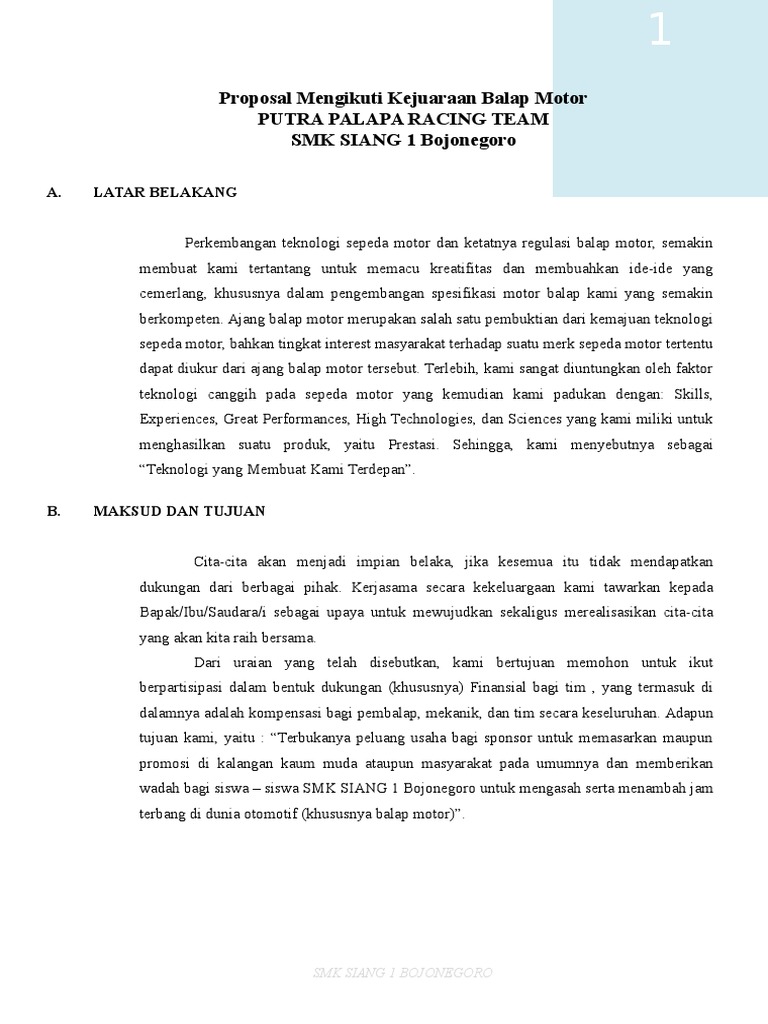 Contoh Proposal Cari Sponsor Untuk Team Balap - Berbagi Contoh Proposal