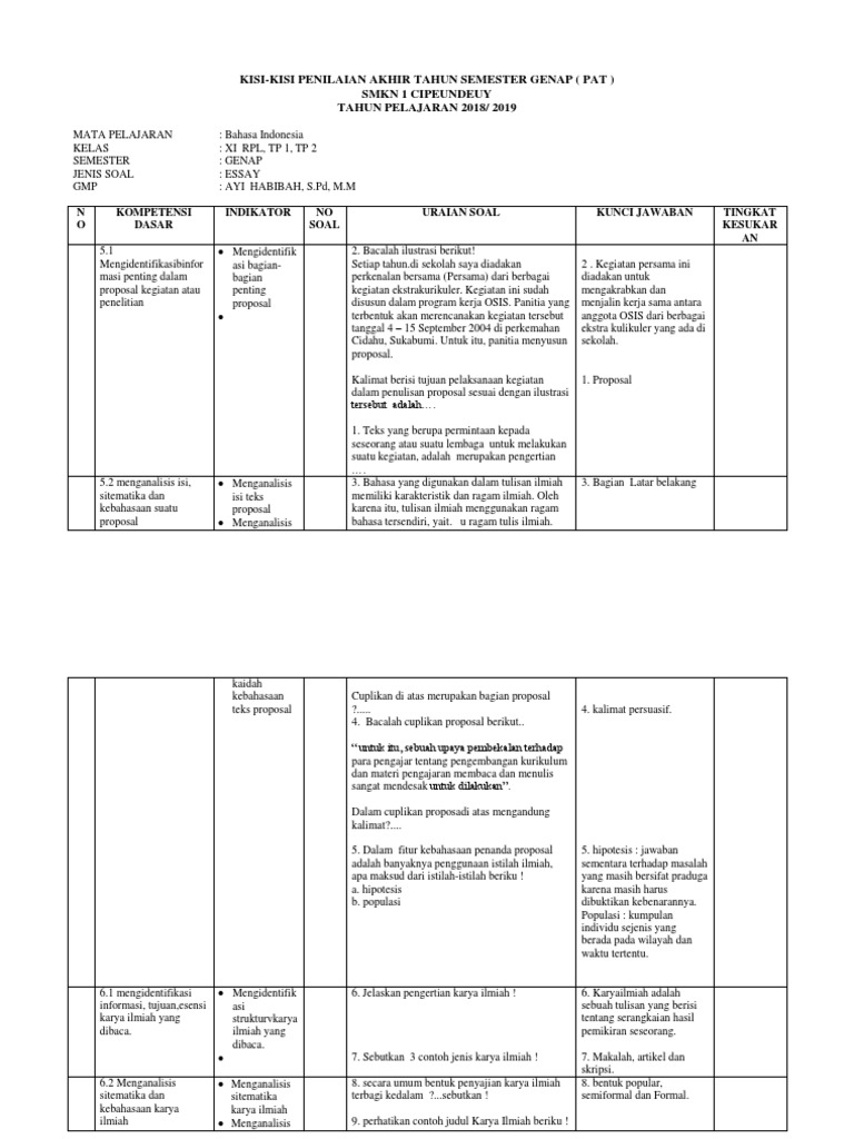 Kisi-kisi b Indo Kelas Xi Genap 2019