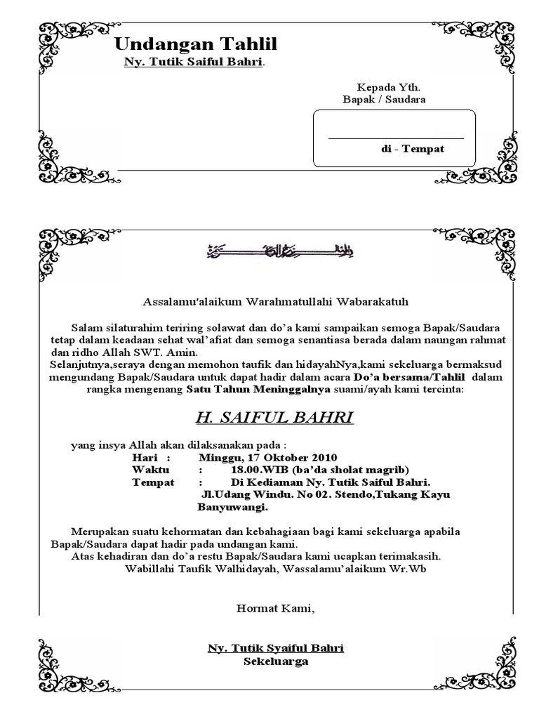 DOC) Contoh Surat Undangan Tahlil 40, 100, 1000 hari | Teja Sukmana - Academia.edu