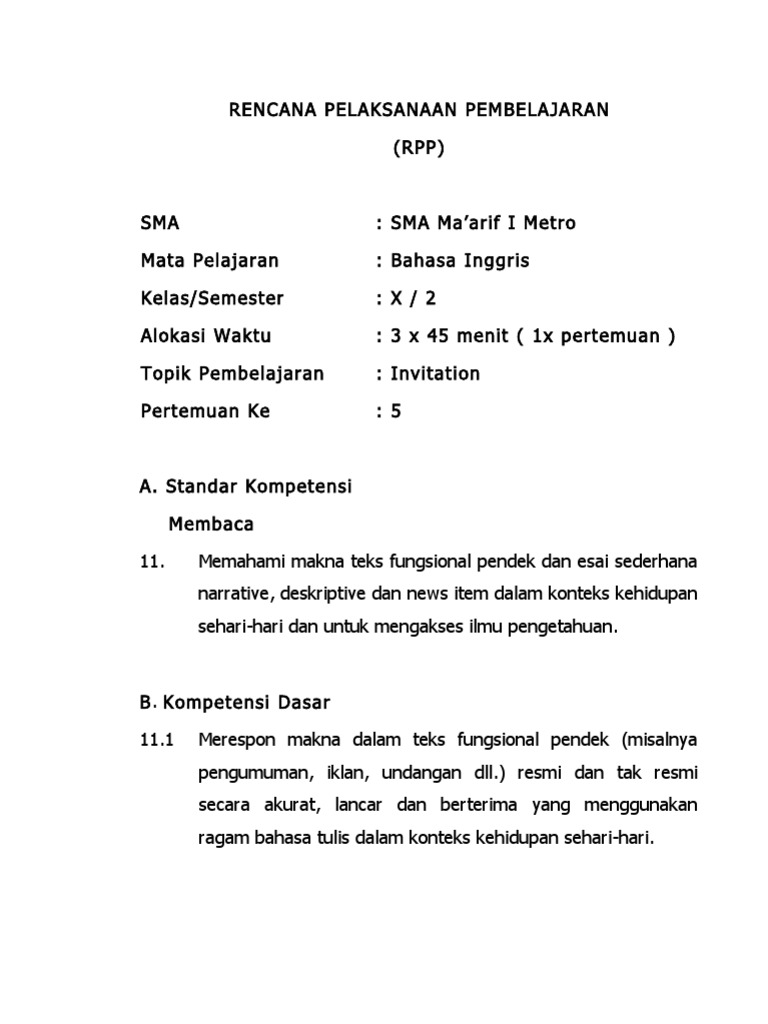 DOC) RPP Bahasa Inggris kelas XI Semester 1 Formal Invitation K.13 | Rifda Eldi Maritsa - Academia.edu