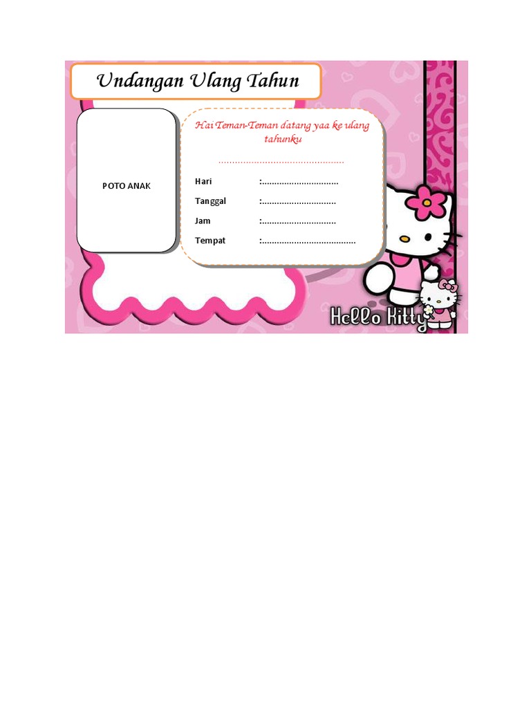 Contoh Undangan Ulang Tahun Anak Tema Hello Kitty Bisa Di Edit