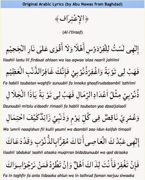 Lirik Syair Abu Nawas Ilahilastulil Firdaus Menyentuh Hati, Ini Tulisan Arab & Arti Sebuah Pengakuan - Halaman all - Sriwijaya Post