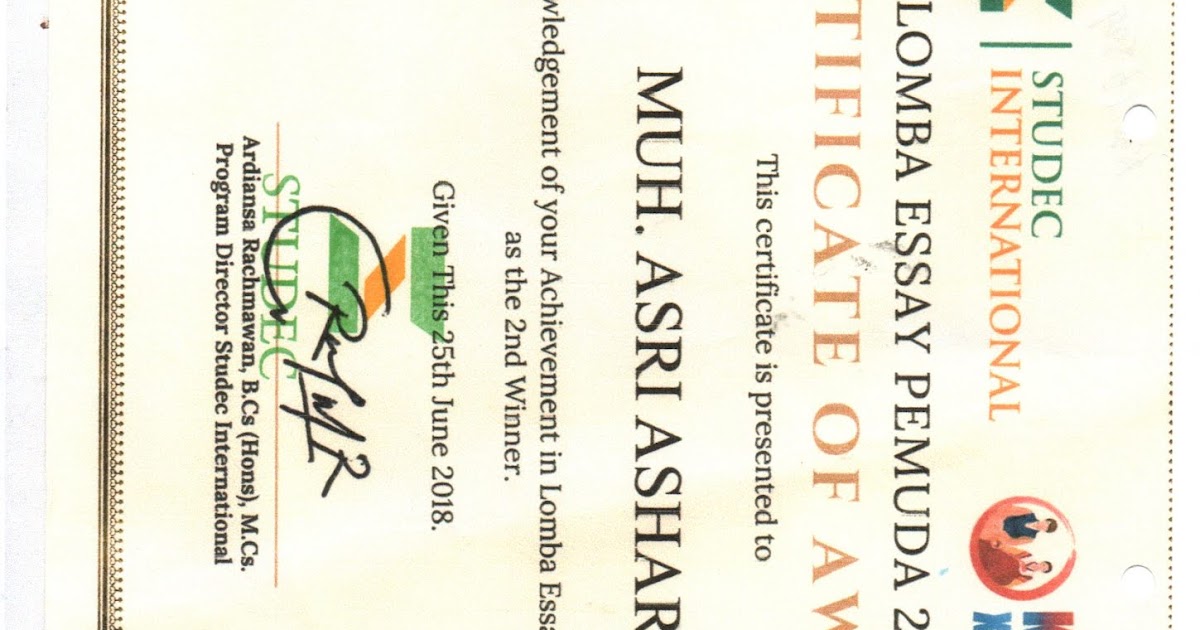 FAKULTAS EKONOMI DAN BISNIS (FEB) UNHAS: Sertificate Of Awards an. Muh. Asri Ashar Lomba Essay Pemuda 2018