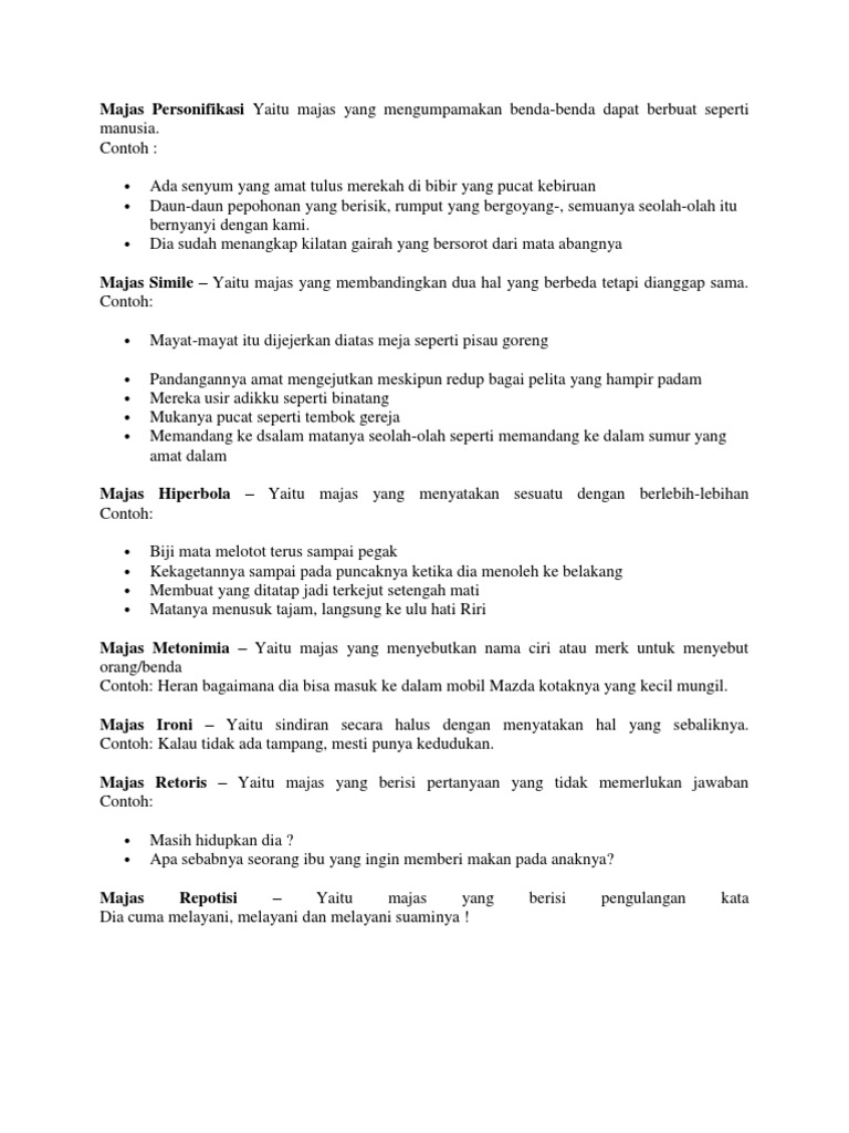 DOC) Pengertian Majas dan Macam-Macam Majas | Anto Subagja - Academia.edu