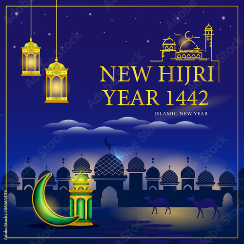 Islamic new year and happy muharram 1442 H greeting card design …