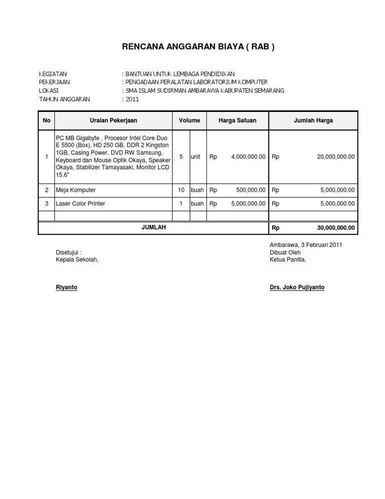 PROPOSAL ANGGARAN BIAYA PENGADAAN LAB KOMPUTER - PDF Download Gratis