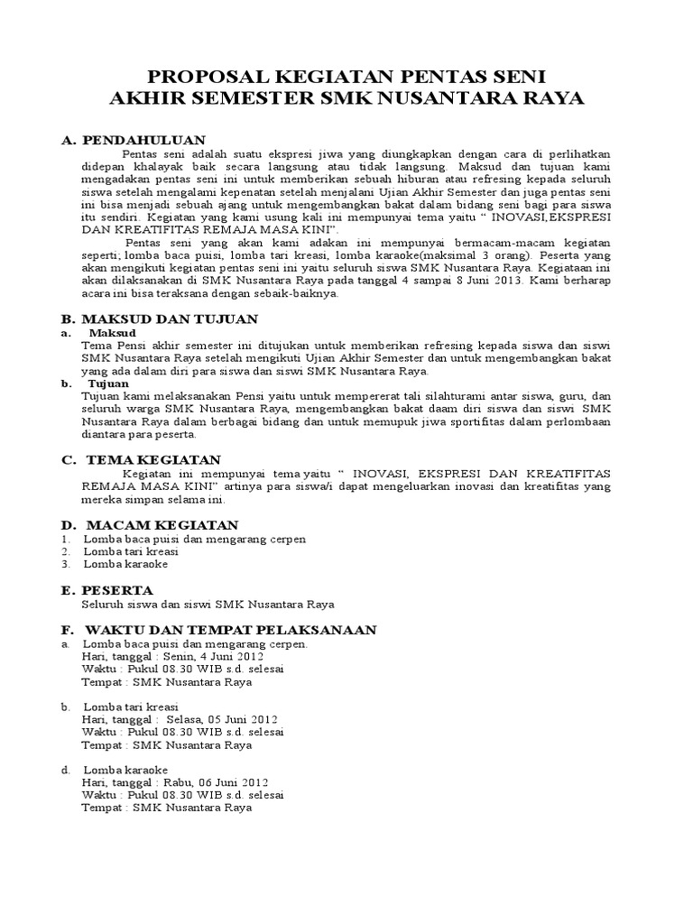 DOC) PROPOSAL KEGIATAN PENTAS SENI AKHIR SEMESTER SMAN 2 SEKAYU | Deni Syahputra - Academia.edu