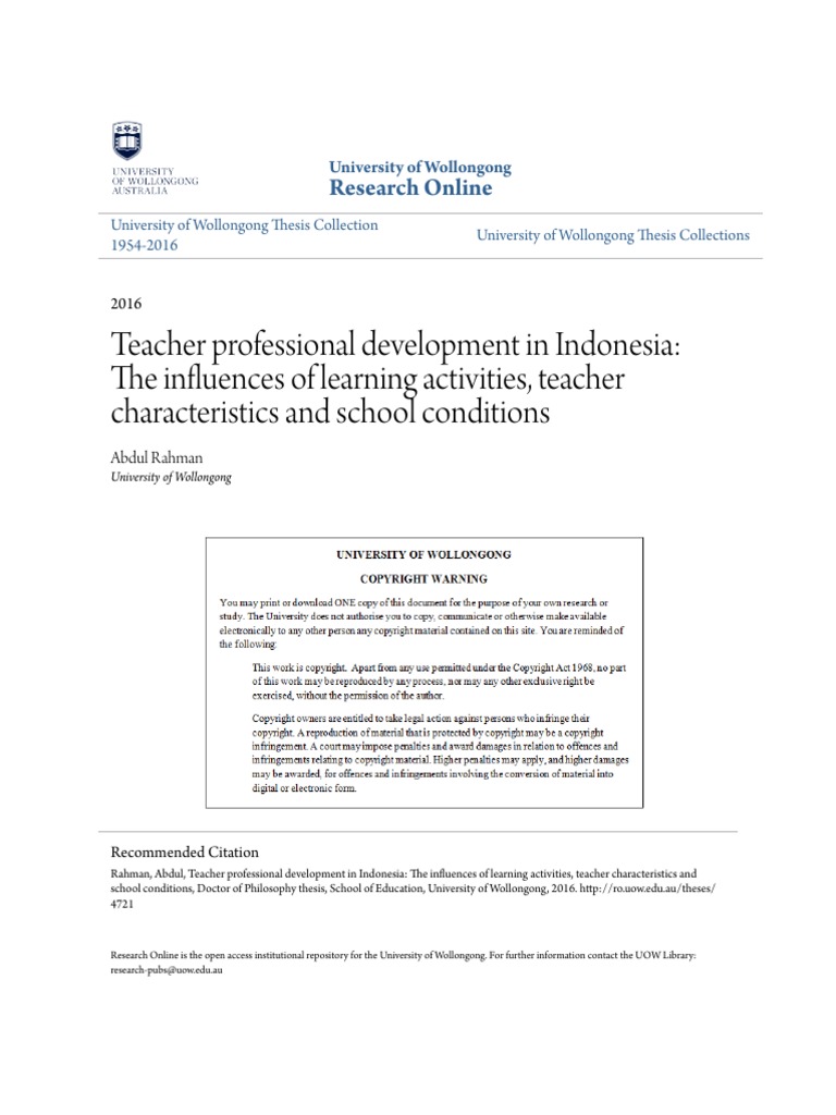 Teacher professional development in Indonesia: The influences of …