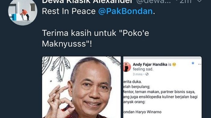 Pengamat kuliner Bondan Winarno yang terkenal dengan slogan ‘maknyus’ dikabarkan telah meningga dunia | Media Apa Kabar