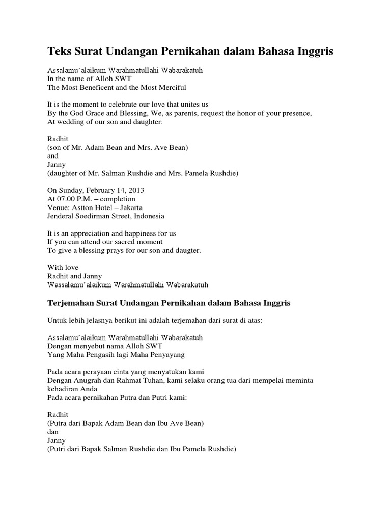 Contoh Surat Undangan Pernikahan Dalam Bahasa Inggris Terlengkap | Undangan pernikahan, Undangan, Pernikahan