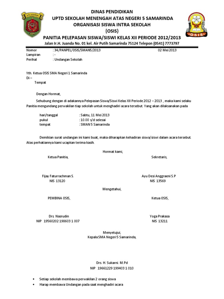 Contoh Surat Undangan Resmi Organisasi OSIS Sekolah | Belajar Office