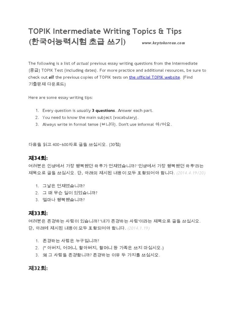 TOPIK Intermediate Essay Writing Guide ( ) | TOPIK GUIDE - The Complete Guide to TOPIK Test