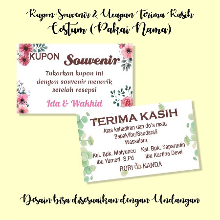 Kartu Souvenir Pernikahan dan Ucapan Terima Kasih Costum (Pakai Nama) | Shopee Indonesia