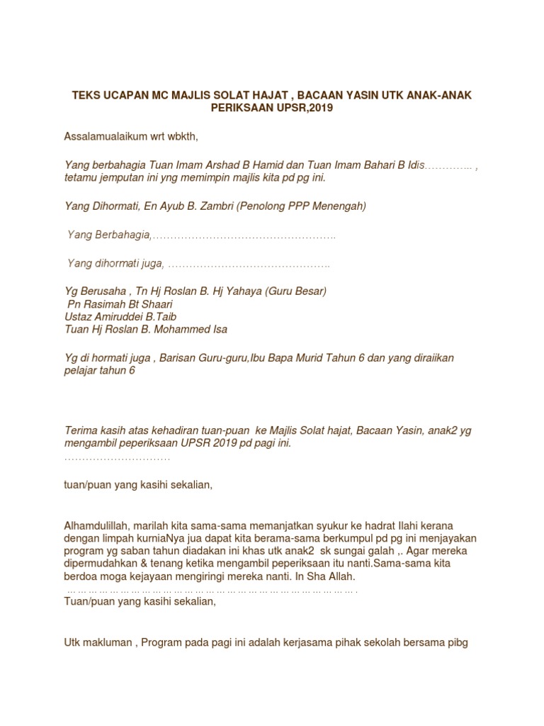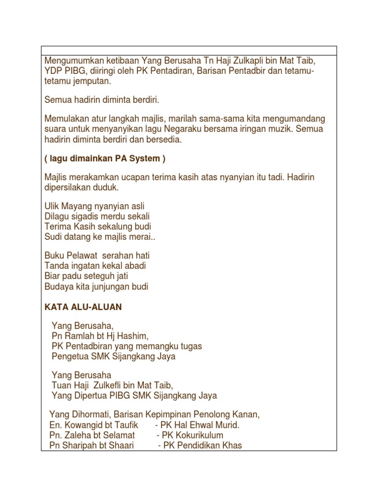 DOC) Ucapan selamat datang dan ribuan terima kasih diucapkan kerana sudi meluangkan masa menghadirkan diri dalam Program ini.docx | PEI LIAN TAN - Academia.edu