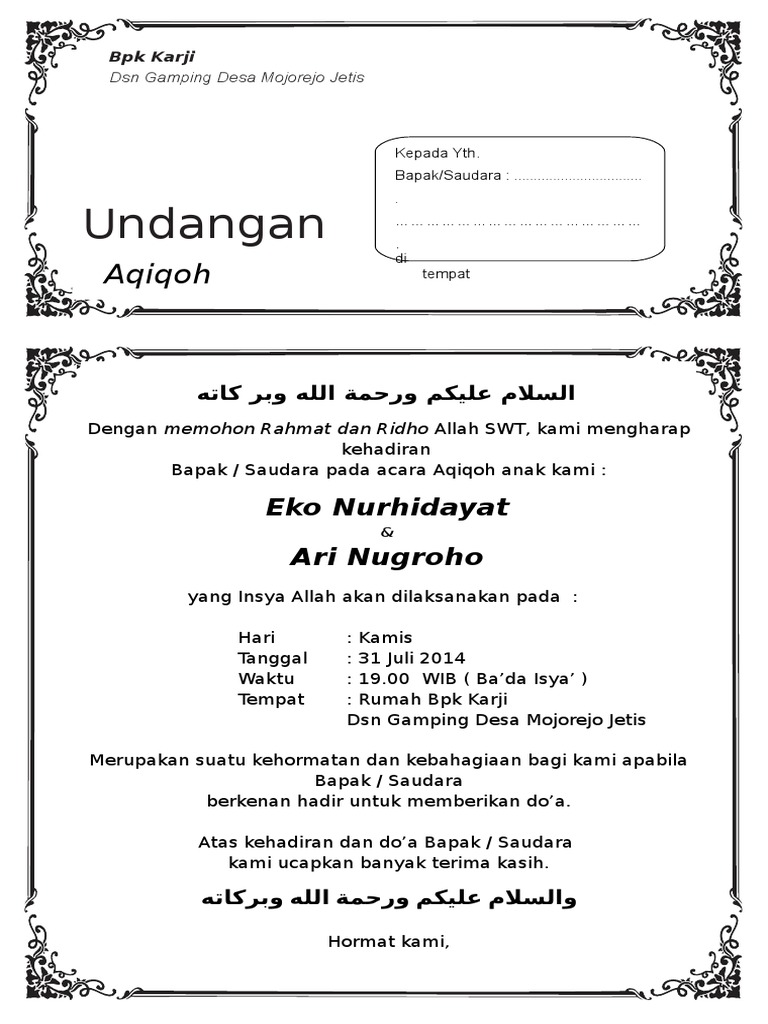 Contoh Undangan Walimatul Ursy Dalam Bentuk Word