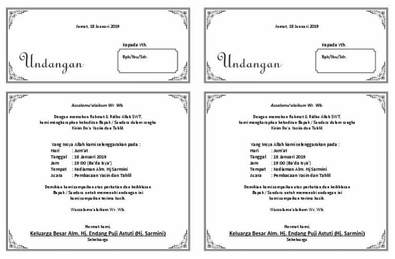 Contoh Undangan Tahlil 2 Lembar Contoh Isi Undangan - Cute766