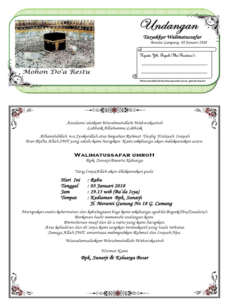 Undangan Walimatussafar Umroh Pdf - Berita Umroh Haji | UmrohHajiNews.com