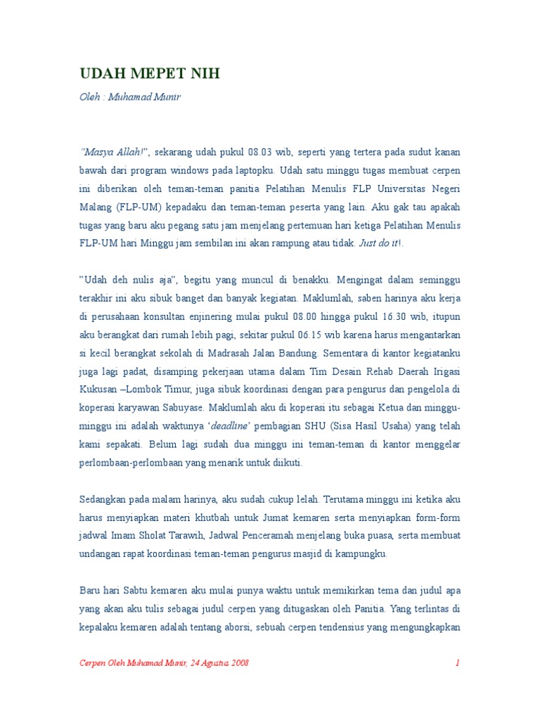 UDAH MEPET NIH Cerpen