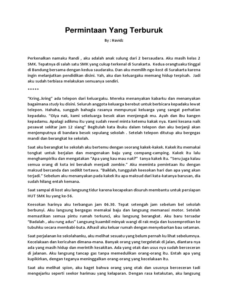 CERPEN : Zombie Apocalypse