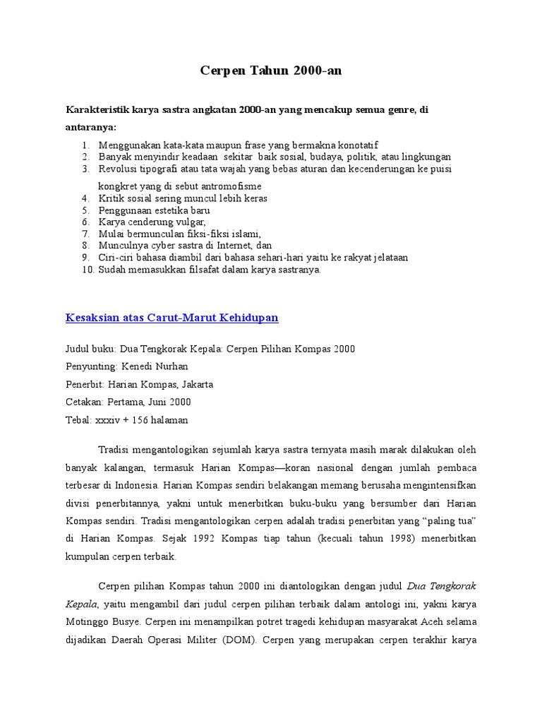 Cerpen Tahun 2000