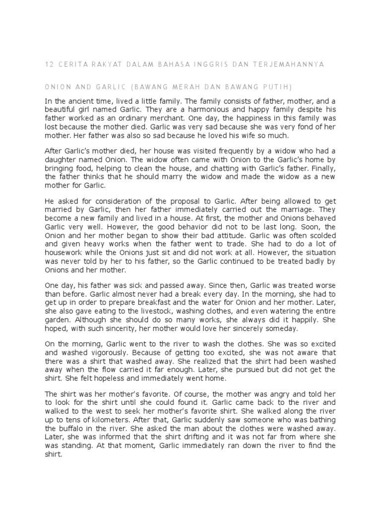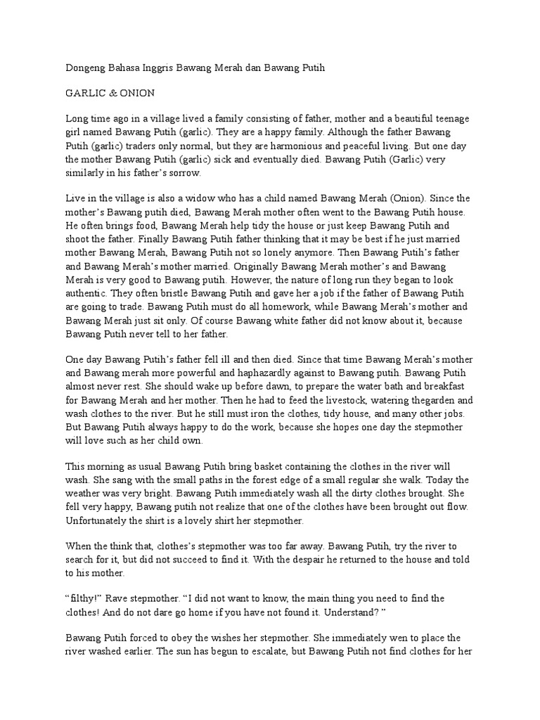 Cerita Rakyat Bawang Merah Bawang Putih Dalam Bahasa Inggris Dan …
